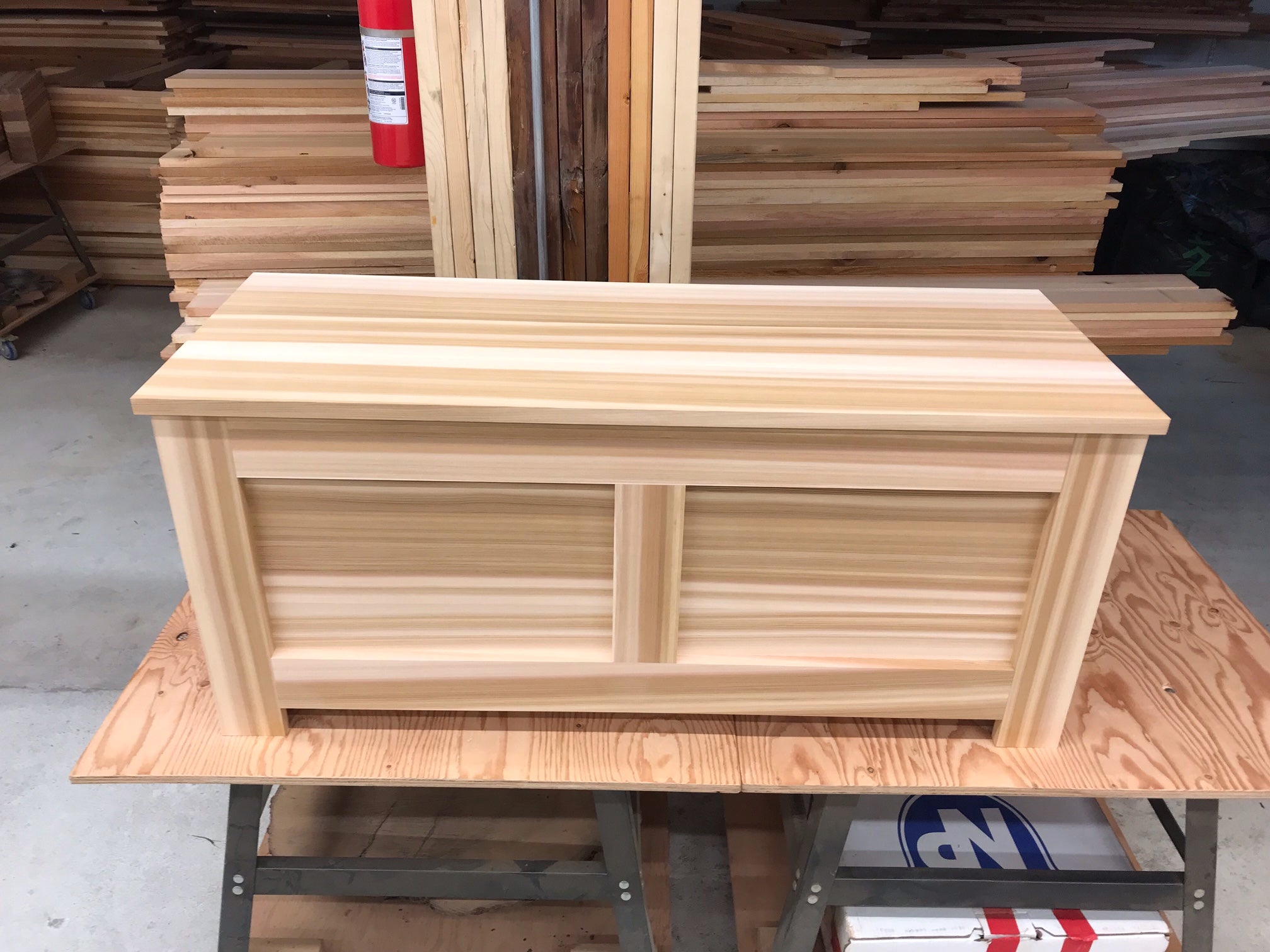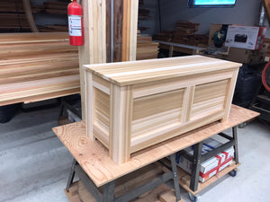 To help make the shipping cost as low as possible for something this size the cedar chest arrives as a kit for you to assemble in 40 pre-cut and sanded pieces, while the lid and bottom panel have been glued together by us to help make assembly easier and end up with a more robust storage chest. Assembly of this chest does require a level of skill and I am working on an assembly video that I would recommend you watch before ordering so it is clear what you are ordering. Only one side of the panels will be pre-drilled and countersunk, so it will be up to you to line the panels up properly while screwing them together. It is much different than an Ikea piece of furniture where both pieces are pre-drilled and you only need to line the screw up into the hole on the second piece and tighten. All screws, lid hinges and a color instruction sheet are included and assembly takes about an hour and a half.