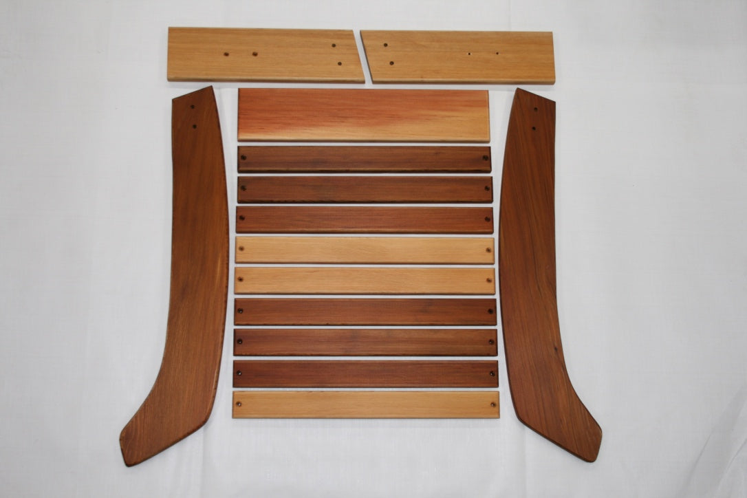 -Footrest will arrive in 14 pieces, pre-drilled where applicable, countersunk where needed, edges rounded over and finish sanded with 120 grit sandpaper.